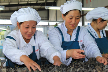 工人們在加工黑木耳 |