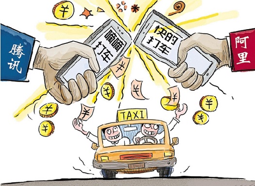河北社科院財貿(mào)所副所長崔巍認(rèn)為,現(xiàn)在阿里巴巴支持的快的打車和騰訊支持的嘀嘀打車,主要都是推廣各自的移動支付,打車付費(fèi)屬于高頻率行為,是絕佳的用戶附著點(diǎn)。于是,為了爭奪移動互聯(lián)網(wǎng)“入口”,雙方輪番激戰(zhàn),不惜重金“收買”司機(jī)與乘客。