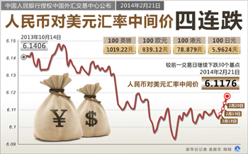 “此次的中間價連續(xù)下跌,是央行有意分化人民幣升值的預(yù)期!睂ν饨(jīng)貿(mào)大學(xué)金融學(xué)院兼職教授趙慶明對《經(jīng)濟(jì)參考報》記者說。從去年12月美聯(lián)儲宣布逐漸縮減購債規(guī)模開始,印度、土耳其等新興市場國家受到國際資本撤出沖擊貨幣普遍大幅貶值,但是同處新興市場國家之列,面對同樣的金融市場環(huán)境,人民幣似乎“獨善其身”,幣值仍然堅挺,市場也較為一致看好人民幣繼續(xù)升值。而從外匯占款等指標(biāo)來看,外部資金也仍然持續(xù)流入中國。最新的1月份外匯占款統(tǒng)計數(shù)據(jù)還未公布,不過,趙慶明表示,預(yù)計1月份外匯資金流入依然顯著,央行的策略是引導(dǎo)人民幣匯率略微走弱,也借此警示進(jìn)來的熱錢。