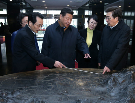 中共中央總書記、國(guó)家主席、中央軍委主席習(xí)近平近日在北京市考察。這是習(xí)近平在市規(guī)劃展覽館了解北京地理環(huán)境。