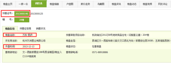 的確,根據(jù)透明售房網(wǎng)的數(shù)據(jù)顯示,幢號為20幢的萬科西廬房源,預(yù)售證在2013年12月13日就已經(jīng)拿出了,預(yù)售證號2013000146。