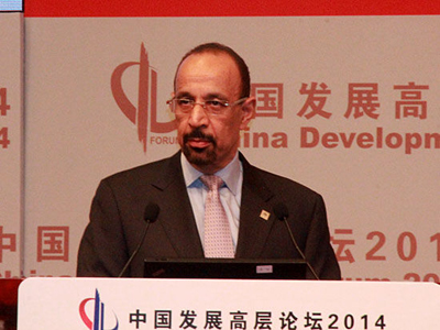 “中國發(fā)展高層論壇2014”于3月22日-24日在釣魚臺舉行。上圖為沙特阿拉伯石油公司總裁、首席執(zhí)行官哈立德·法利赫在《對話會二:探索低碳發(fā)展之路》上做主題發(fā)言。