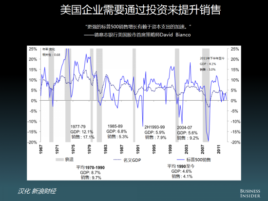 “更強的標(biāo)普500銷售增長有賴于資本支出的加速!薄乱庵俱y行美國股市首席策略師David Bianco