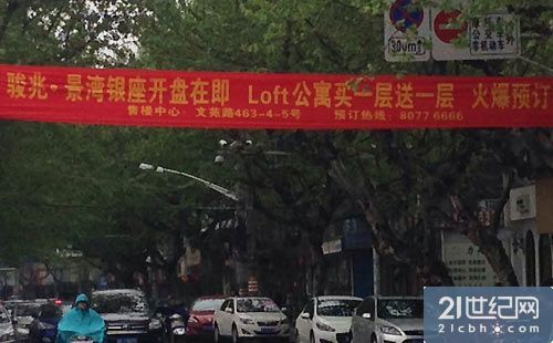 (景灣銀座打出的促銷廣告。21世紀網(wǎng) 都進攝)
