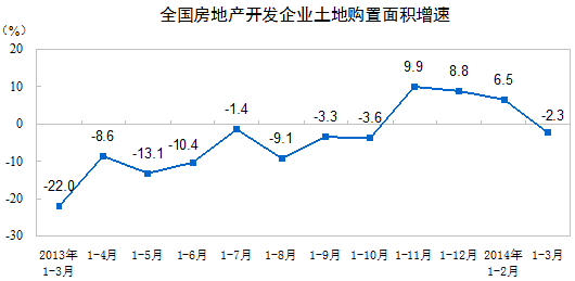 1-3月份,房地產(chǎn)開(kāi)發(fā)企業(yè)土地購(gòu)置面積5990萬(wàn)平方米,同比下降2.3%,1-2月份為增長(zhǎng)6.5%;土地成交價(jià)款1556億元,增長(zhǎng)11.4%,增速提高2.5個(gè)百分點(diǎn)。