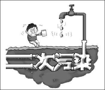 近年來,隨著水污染、發(fā)黃、有異味、毒器材等自來水公共事件的發(fā)生,自來水安全成為人們切身的關注!督(jīng)濟參考報》記者調研發(fā)現(xiàn),除了水源地水質下降、自來水廠處理工藝落后外,一些用水單位二次供水設施存在設備老化、不能定期清洗的現(xiàn)象,水質合格的自來水在經(jīng)過這一環(huán)節(jié)后,被污染的幾率大大增加。