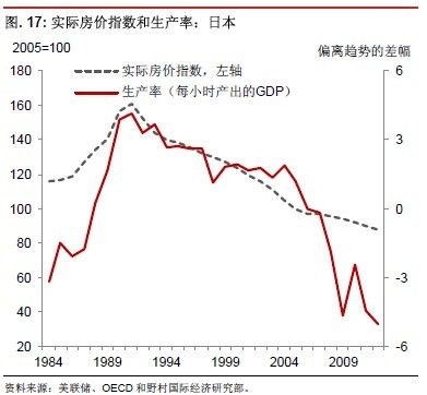 我們觀察到,在房地產(chǎn)市場大幅調(diào)整之前或同時(shí),往往會出現(xiàn)生產(chǎn)率增長下降的情況。20 世紀(jì)80