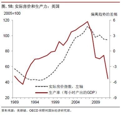 年代的日本,以及2008年之前的愛爾蘭、英國和美國就出現(xiàn)了類似的情況(圖16-19)。有大量學(xué)術(shù)研究發(fā)現(xiàn),在金融危機(jī)發(fā)生前會出現(xiàn)生產(chǎn)率下降的情況(美國:
