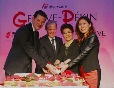 日內(nèi)瓦州議會副議長皮埃爾·默岱代表州政府對日內(nèi)瓦至北京航線開航周年慶典表示祝賀,他表示這種建立在互惠互利、信任共贏基礎(chǔ)上的合作是中瑞企業(yè)交流的成功典范。隨著兩國合作的進(jìn)一步深化,雙方的商務(wù)和旅游需求也將不斷加強。他歡迎更多的中國游客來日內(nèi)瓦參觀旅游,他認(rèn)為這條航線的開通為日內(nèi)瓦的旅游業(yè)、奢侈品行業(yè)、酒店業(yè)、金融業(yè)等都帶來更多的商機。