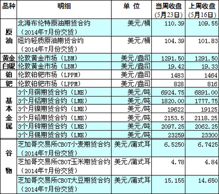 國際大宗商品期貨價(jià)格明細(xì)表[2014-5-26]