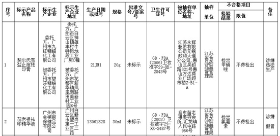 附件:國家化妝品監(jiān)督抽檢不合格產(chǎn)品名單