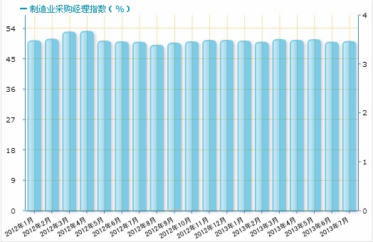 主要原材料購進(jìn)價(jià)格指數(shù)為50.1%,比上月上升0.1個(gè)百分點(diǎn),重回臨界點(diǎn)以上。
