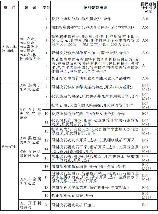 除列明的外商投資準(zhǔn)入特別管理措施,禁止(限制)外商投資國(guó)家以及中國(guó)締結(jié)或者參加的國(guó)際條約規(guī)定禁止(限制)的產(chǎn)業(yè),禁止外商投資危害國(guó)家安全和社會(huì)安全的項(xiàng)目,禁止從事?lián)p害社會(huì)公共利益的經(jīng)營(yíng)活動(dòng)。