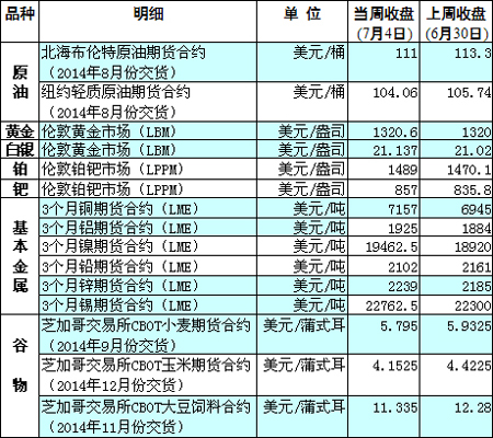 國際大宗商品期貨價格明細(xì)表[2014-7-7]