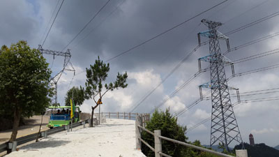 南方電網(wǎng)高壓線架設于觀音山上山必經(jīng)之路之上,距離之近幾近伸手可觸,黃淦波說,因為這組高壓線,一到陰雨天就沒人敢上山了。記者 張彬 攝