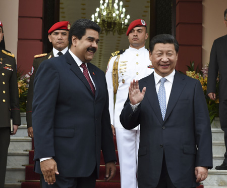 當(dāng)?shù)貢r(shí)間7月20日,國(guó)家主席習(xí)近平在加拉加斯同委內(nèi)瑞拉總統(tǒng)馬杜羅舉行會(huì)談,兩國(guó)元首宣布將中委關(guān)系提升為全面戰(zhàn)略伙伴關(guān)系。習(xí)近平提出,應(yīng)加強(qiáng)兩國(guó)合作頂層設(shè)計(jì),以金融和投資為引擎,以能源合作為主軸,多個(gè)輪子一起轉(zhuǎn)。雙方要用好融資合作機(jī)制,推進(jìn)礦產(chǎn)、基礎(chǔ)設(shè)施建設(shè)、科技合作,盡早啟動(dòng)農(nóng)業(yè)示范園建設(shè)。中方愿加大對(duì)委方衛(wèi)星技術(shù)轉(zhuǎn)讓?zhuān)膭?lì)有實(shí)力的中國(guó)企業(yè)積極參與委內(nèi)瑞拉經(jīng)濟(jì)特區(qū)建設(shè)。