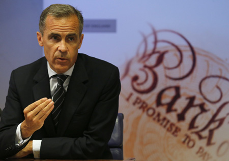 圖為英國(guó)央行行長(zhǎng)卡尼當(dāng)日在季度通脹報(bào)告新聞發(fā)布會(huì)上講話。