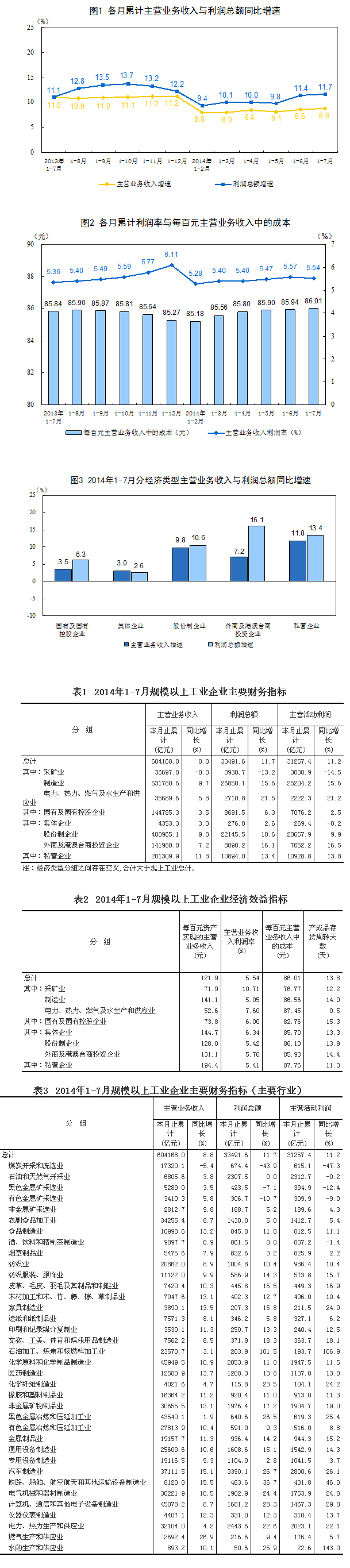 1-7月份,規(guī)模以上工業(yè)企業(yè)主營業(yè)務(wù)收入利潤率為5.54%,每百元主營業(yè)務(wù)收入中的成本為86.01元,每百元資產(chǎn)實現(xiàn)的主營業(yè)務(wù)收入為121.9元,產(chǎn)成品存貨周轉(zhuǎn)天數(shù)為13.8天。