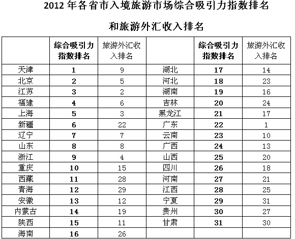 根據(jù)對(duì)“入境旅游市場(chǎng)吸引力指數(shù)”的研究,國(guó)內(nèi)最具吸引力的省市(省級(jí)行政區(qū)域)是天津、北京和江蘇;最具吸引力的三個(gè)城市是福州、泉州和南京,其中,福州的指數(shù)值為244,是全國(guó)中間水平的2.44倍,泉州和南京分別為全國(guó)中間水平的1.78倍和1.57倍。