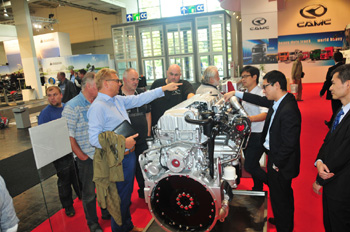 漢諾威車展上,觀眾正在參觀華菱汽車CM6D28發(fā)動(dòng)機(jī)。 陳會(huì)松