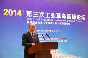 安徽江淮汽車股份有限公司總經(jīng)理項(xiàng)興初在“2014第三次工業(yè)革命高峰論壇”上演講。王皓然/攝 |