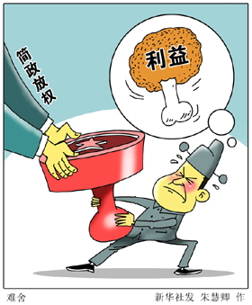 其次,放權不夠徹底。有的地方受理權放了,終審權不放,或者決定權放了,發(fā)證權又不放;蛘呤恰皼]好處的容易放,有油水的就不放”。