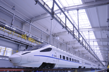 中共中央總書記、國家主席、中央軍委主席、中央財經(jīng)領(lǐng)導小組組長習近平11月4日上午主持召開中央財經(jīng)領(lǐng)導小組第八次會議,研究絲綢之路經(jīng)濟帶和21世紀海上絲綢之路規(guī)劃、發(fā)起建立亞洲基礎(chǔ)設(shè)施投資銀行和設(shè)立絲路基金。 圖為被譽為“鋼鐵絲綢之路”的蘭新高鐵青海段上的動車組。