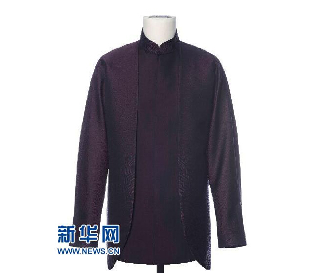 11月10日,國(guó)家主席習(xí)近平和夫人彭麗媛在北京為出席亞太經(jīng)合組織(APEC)第二十二次領(lǐng)導(dǎo)人非正式會(huì)議的各成員經(jīng)濟(jì)體領(lǐng)導(dǎo)人、代表及配偶舉行歡迎晚宴,為本次會(huì)議設(shè)計(jì)制作的特色中式服裝亮相。這是男領(lǐng)導(dǎo)人外套——紫紅立領(lǐng)、對(duì)開(kāi)襟、圓下擺外套。