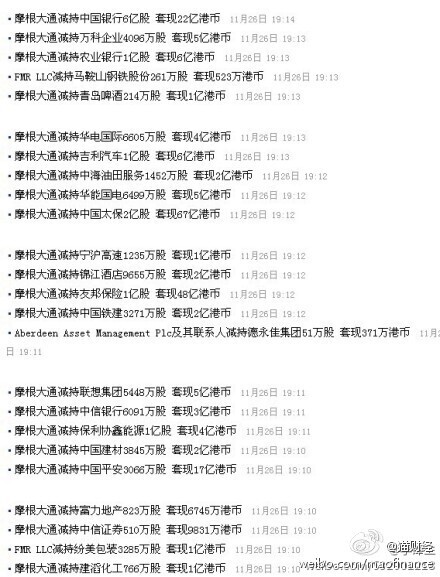港交所最新數(shù)據(jù)顯示,摩根大通于11月20日全方位減持中國銀行、農(nóng)業(yè)銀行、友邦保險、中國鐵建等70余只港股,涉及領(lǐng)域包括銀行、保險、券商、地產(chǎn)、建材、鋼鐵、能源、消費等。