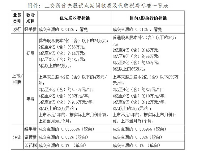 據(jù)上交所官方微博28日消息,根據(jù)《上海證券交易所優(yōu)先股試點管理辦法》,上交所優(yōu)先股收費標準已在上交所官方網(wǎng)站發(fā)布,其中,印花稅的收取同目前A股執(zhí)行標準一致:按成交金額0.1%單向征收。