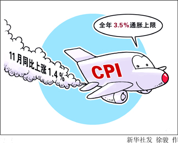 國家統(tǒng)計局10日公布,11月我國CPI同比上漲1.4%,連續(xù)第三個月低于2%;環(huán)比下降0.2%,年內(nèi)第四個月負增長。國家統(tǒng)計局城市司高級統(tǒng)計師余秋梅解讀稱,新漲價因素有所減少,致使CPI同比漲幅比上月回落0.2個百分點。這主要是受天氣、季節(jié)和國際因素影響。從天氣因素看,11月份全國平均氣溫3.9℃,較常年同期偏高1.0℃。較好的氣候條件有利于南方露地蔬菜的生長和香蕉、柑橘等水果的采收,市場供應相對充足,鮮菜和鮮果價格因此環(huán)比分別下降1.6%和0.5%,合計影響CPI環(huán)比下降0.06個百分點。從季節(jié)因素看,11月部分地區(qū)進入旅游淡季,飛機票、景點門票、旅行社收費和賓館住宿價格環(huán)比分別下降6%、4.5%、3.7%和2%,合計影響CPI環(huán)比下降0.08個百分點。從國際因素看,國際原油價格持續(xù)下跌,帶動國內(nèi)成品油價格下降。11月份汽油和柴油價格環(huán)比分別下降5.6%和5.9%,合計影響CPI環(huán)比下降0.05個百分點。