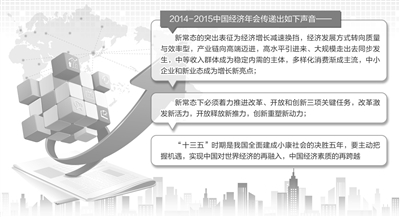 在認(rèn)識(shí)新常態(tài)、適應(yīng)新常態(tài)、引領(lǐng)新常態(tài)的“大邏輯”下,中國(guó)經(jīng)濟(jì)要秉持怎樣的發(fā)展新理念?從何發(fā)掘經(jīng)濟(jì)發(fā)展新動(dòng)力?如何營(yíng)造經(jīng)濟(jì)發(fā)展新環(huán)境?12月21日舉行的2014-2015中國(guó)經(jīng)濟(jì)年會(huì)上,與會(huì)專家學(xué)者展開(kāi)了一場(chǎng)腦力激蕩——