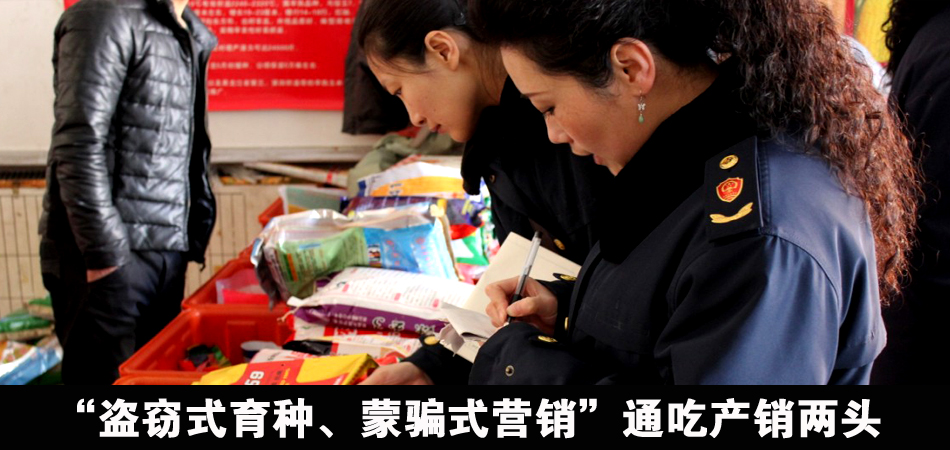第五,“偽升級”。市場上還多有“鄭麥9023—x”“衡觀35—x”“西農(nóng)979x”(x為數(shù)字),記者暗訪詢問,加個數(shù)字是什么意思。經(jīng)銷商一般也解釋不清楚,只說就是“升級版”,產(chǎn)量更高、抗性更高等。襄陽市襄州區(qū)工商部門有關(guān)人士介紹說,近年來這種“傍品種”“傍名牌”“傍包裝”的“三傍”現(xiàn)象比較突出,給執(zhí)法人員執(zhí)法帶來各種困擾。