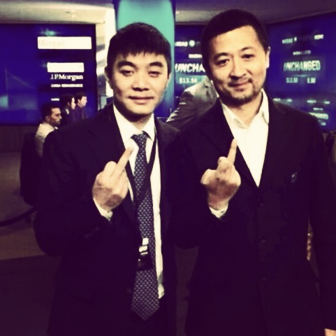 陌陌創(chuàng)始人唐巖在敲鐘現(xiàn)場,