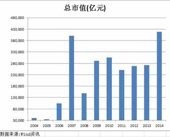 WIND數(shù)據(jù)顯示,截至12月30日收盤,滬深兩市上市公司總市值已達(dá)41.86萬(wàn)億元,流通A股市值則達(dá)30.80萬(wàn)億元,而在2013年底,這兩個(gè)數(shù)字才分別為27.25萬(wàn)億元和19.80萬(wàn)億元。