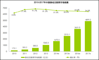 2015年,以互聯(lián)網(wǎng)為基礎(chǔ)的消費仍有望保持高速增長,中國信息通信研究院(原工信部電信研究院)預(yù)計,2015年我國互聯(lián)網(wǎng)服務(wù)收入將突破8500億元,同比增長34%,電子商務(wù)交易規(guī)模則會向15萬億大關(guān)發(fā)起沖擊。與此同時,互聯(lián)網(wǎng)對信息消費的拉動作用也將進一步顯現(xiàn),工信部、發(fā)改委等權(quán)威部門預(yù)測,“十二五”后三年,我國信息消費規(guī)模年均增長20%以上,到2015年年底,我國信息消費規(guī)模將超過三萬億元。