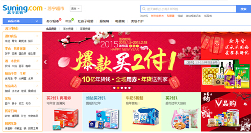 蘇寧超市相關(guān)負(fù)責(zé)人介紹,2015年,蘇寧加快超電器化的步伐,打造線上虛擬、線下實(shí)體的綜合性交易平臺(tái)。蘇寧超市作為重要板塊,承擔(dān)著引流器和增加用戶黏性、復(fù)購(gòu)率的角色。同時(shí),通過春節(jié)吃、喝等具象化促銷活動(dòng),凸顯蘇寧的全品類形象。