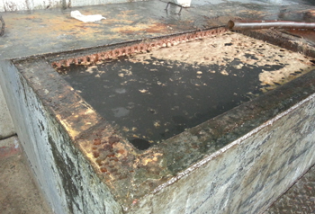 在中器環(huán)保的地溝油收集池中,臟臭的地溝油被集納起來等待處置,走進(jìn)這個(gè)大廳,一股濃烈的異味撲面而。周琳/攝 |