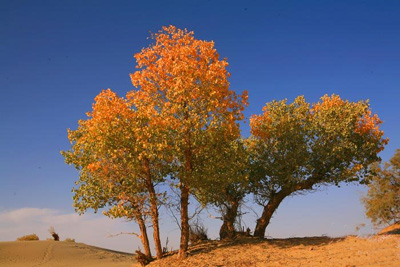 依托縣城東北胡楊林場(chǎng),建成了千年胡楊森林公園,是具有觀光、休閑、科普、影視等功能的自然風(fēng)景區(qū)。借助每片胡楊林的不同布局風(fēng)格、相關(guān)水系與沙漠,規(guī)劃合理的觀光路線,打造出了各具特色的千年胡楊游覽景點(diǎn),在沙漠邊緣空曠土地上,定期舉辦傳統(tǒng)叼羊活動(dòng)。