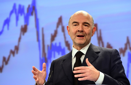 2月5日,在比利時布魯塞爾的歐盟委員會總部,歐盟委員會負責(zé)經(jīng)濟和金融事務(wù)的委員皮埃爾·莫斯科維奇發(fā)布對歐元區(qū)經(jīng)濟情況的最新預(yù)期。 根據(jù)歐盟委員會的判斷,2015年歐元區(qū)整體經(jīng)濟增速為1.3%,高于去年11月預(yù)測的1.1%,歐元區(qū)19個成員國都有望獲得正增長。此外,歐盟委員會預(yù)計歐盟整體經(jīng)濟今年將增長1.7%。