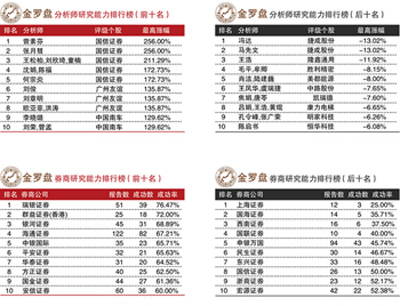 不過,分析師的薦股成績(jī)并沒有隨大盤的震蕩走弱而降低,1月分析師研究能力排行榜前十的分析師,推薦股票在20日短線評(píng)測(cè)中最高漲幅均高于120%,與上月不相上下。