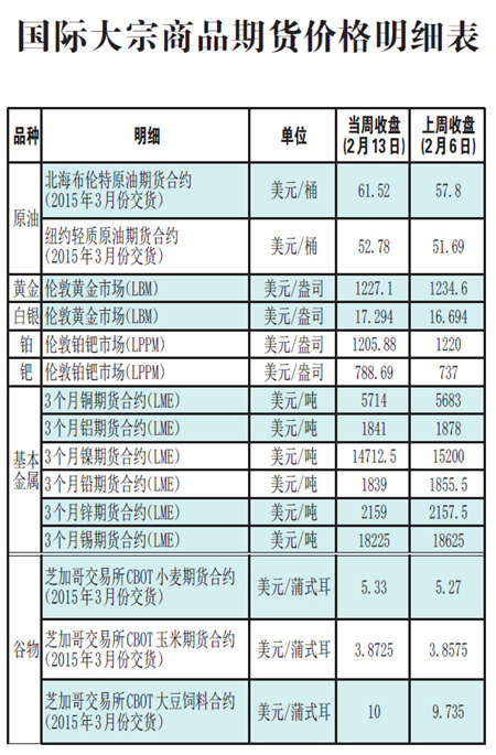 國(guó)際大宗商品期貨價(jià)格明細(xì)表[2015-2-16]
