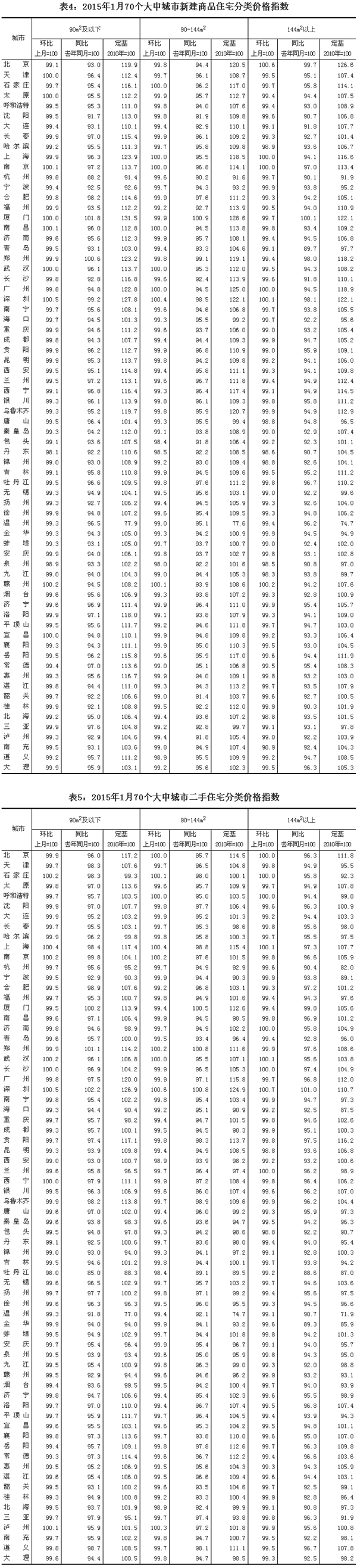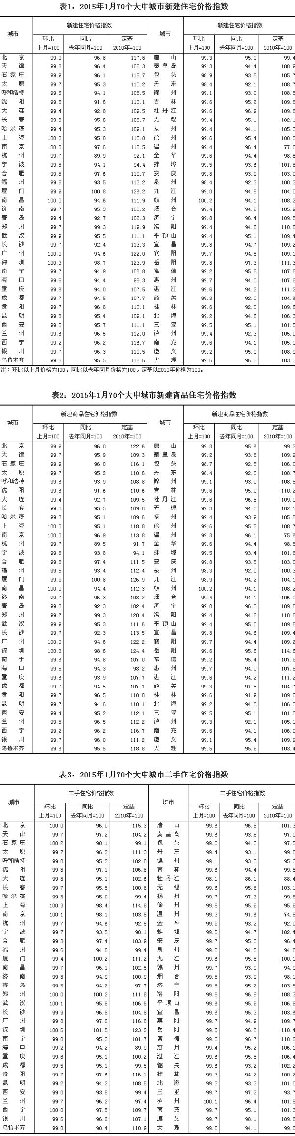 2015年1月份70個(gè)大中城市住宅銷售價(jià)格變動(dòng)情況