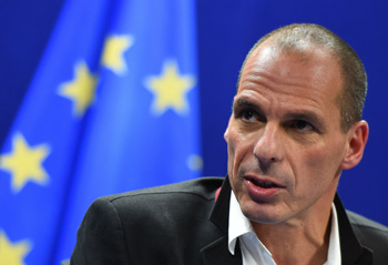 2月20日,在比利時(shí)首都布魯塞爾的歐盟總部,希臘財(cái)長(zhǎng)瓦魯法基斯出席歐元集團(tuán)特別會(huì)議后召開(kāi)新聞發(fā)布會(huì)。新華社/法新 |
