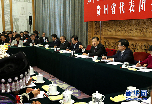 3月8日,中共中央政治局常委、中央書記處書記劉云山參加十二屆全國人大三次會議貴州代表團的審議。 新華社記者 馬占成 攝
