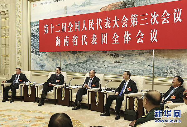 3月8日,中共中央政治局常委、中央紀(jì)委書記王岐山參加十二屆全國人大三次會議海南代表團的審議。 新華社記者 龐興雷 攝
