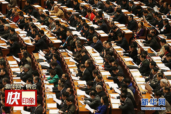 3月10日,全國(guó)政協(xié)十二屆三次會(huì)議在北京人民大會(huì)堂舉行第三次全體會(huì)議。新華社記者 呂迅 攝