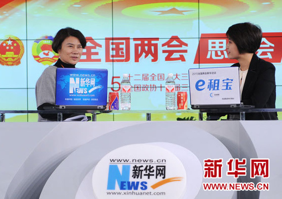 2015年3月9日,全國人大代表、格力集團董事長董明珠做客新華訪談2015全國兩會特別節(jié)目,談“讓創(chuàng)新成為企業(yè)發(fā)展新常態(tài)”。圖為訪談進行中。