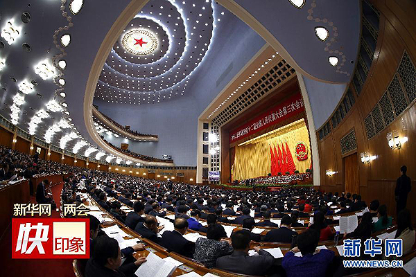 3月12日,十二屆全國人大三次會議在北京人民大會堂舉行第三次全體會議。新華社記者 丁林 攝