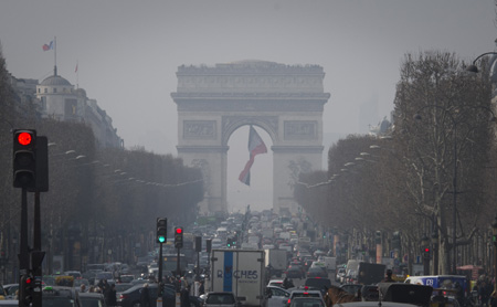 法國(guó)巴黎警察局3月23日在首都巴黎及周邊3個(gè)省份臨時(shí)采取車輛單雙號(hào)限行等緊急措施,應(yīng)對(duì)空氣嚴(yán)重污染現(xiàn)象。近一周來(lái),受無(wú)風(fēng)無(wú)雨天氣影響,由道路交通、春季農(nóng)作物播種施肥及工業(yè)生產(chǎn)等人類活動(dòng)排放到大氣中的各類污染物難以驅(qū)散,造成巴黎大區(qū)及法國(guó)北部多處地區(qū)空氣質(zhì)量明顯下降。